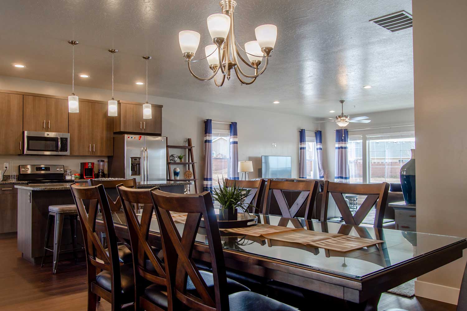 A collection of two homes built for group living on campus. These homes are not only beautiful, they are durable and built to withstand the rigors of teenagers. Of course, they’ve been independently tested and inspected and have earned a great HERS Index score. We use only certified low VOC (volatile organic compounds) products for fresh, clean, healthy air. The floors are waterproof and scratch resistant, the counters are granite, and the exterior needs very little maintenance. Downstairs, bathrooms are built to accommodate four teenagers getting up at the same time and to provide each with their own privacy. With good design, the house easily accommodates wheelchair accessibility while looking good too.