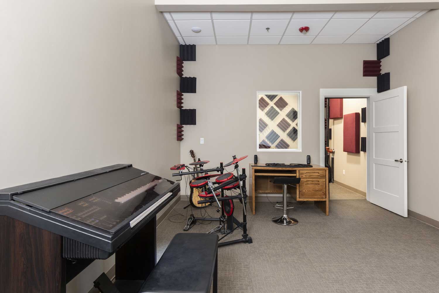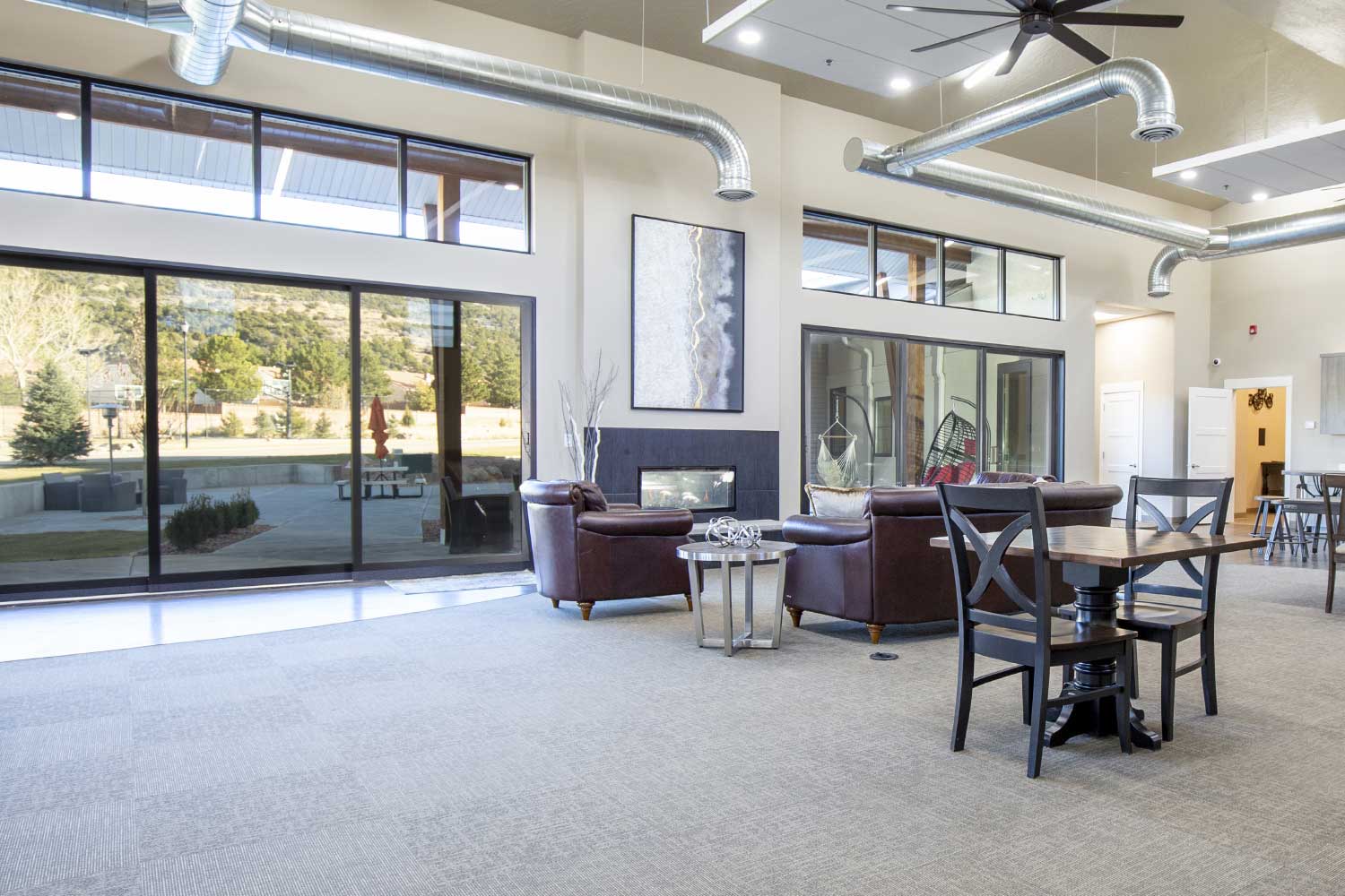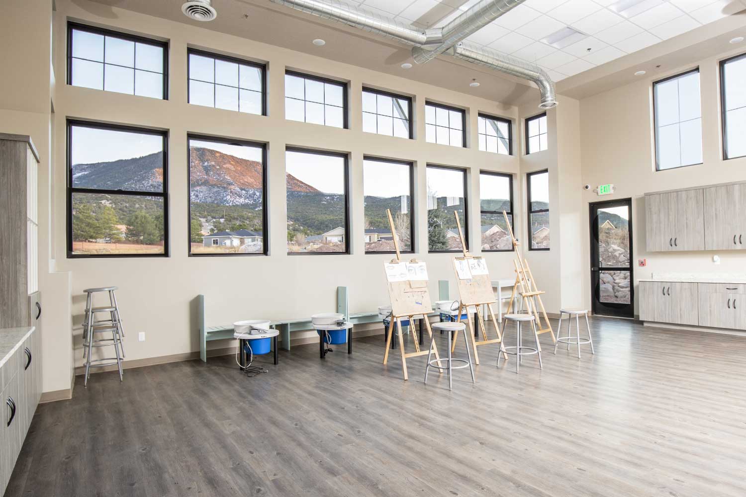 This new 6,356 square foot building on the Mountain Springs Preparatory Academy campus was built to inspire an active student population. The purpose driven design includes a music recording studio, art room for painting and pottery, multipurpose room for seminars, game room, reading nook, movie theater, kitchenette, plus indoor-outdoor gathering spaces, a double sided indoor-outdoor fireplace, and two sets of multiglide sliding glass doors. This spacious building design is very energy efficient with an amazing view!